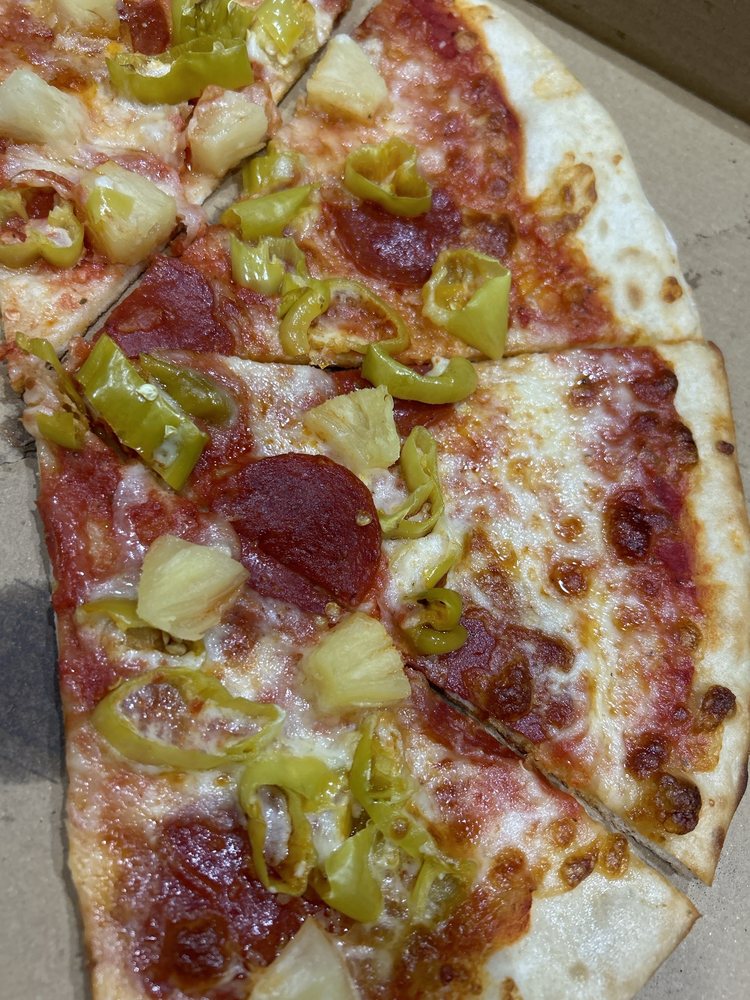 Placed an order for a large pizza with pepperoni, pineapple, and banana peppers. These are not banana peppers. They are pepperocinis cut up. Not at all the same. They have seeds and these way too spic